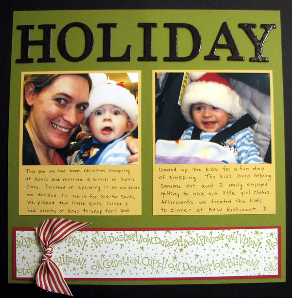 I usually tend to do cards when I am trying to come up with an idea so this time I decided to challenge myself and come up with a scrapbook page to share. I have to say that I think it turned out really cute and I’m excited to share it with you. Today’s theme is Freewheeling Friday so I just need to use a wheel. I had fun making the Rudolph with the punches and the Big Shot. I hope you like the pages. I even added pictures.