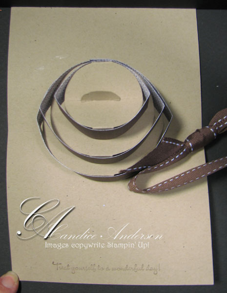 Because it was a wow card I really wanted to use something fun. We have two new die that are available April 1st. They are pop up dies. The Cake Pop-up Die and the Ball Pop-Up Die. I pre-ordered the cake so I just had to try it out. It’s really fun beacuse it pops up out of the card when you open it. It is thick so you really need something to hold it closed. I decided to put a ribbon around it that slides off.