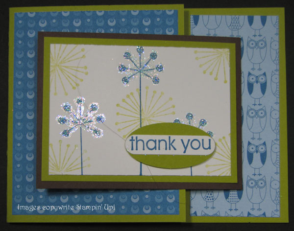 This card was created by Becky Garvey. It’s really cool how it opens. The brown section folds to the right and the Blue section folds to the left. She even stamped the inside.