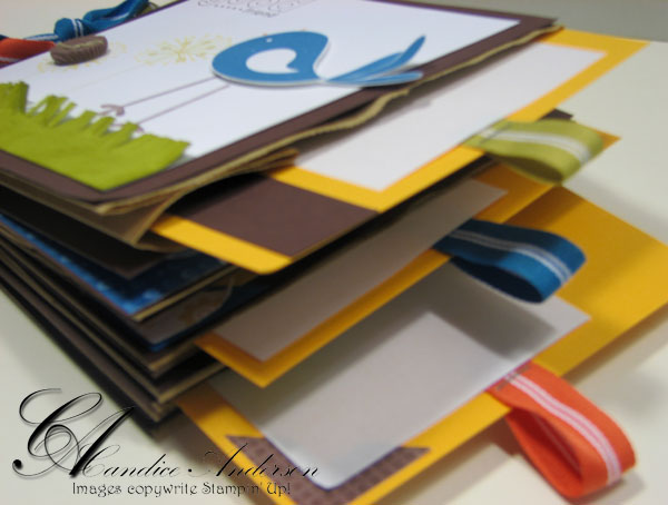 All ribbon needed- Tangerine Tango, Pacific Point, Kiwi Kiss, 1/4″ Chocolate Chip & Linen Thread