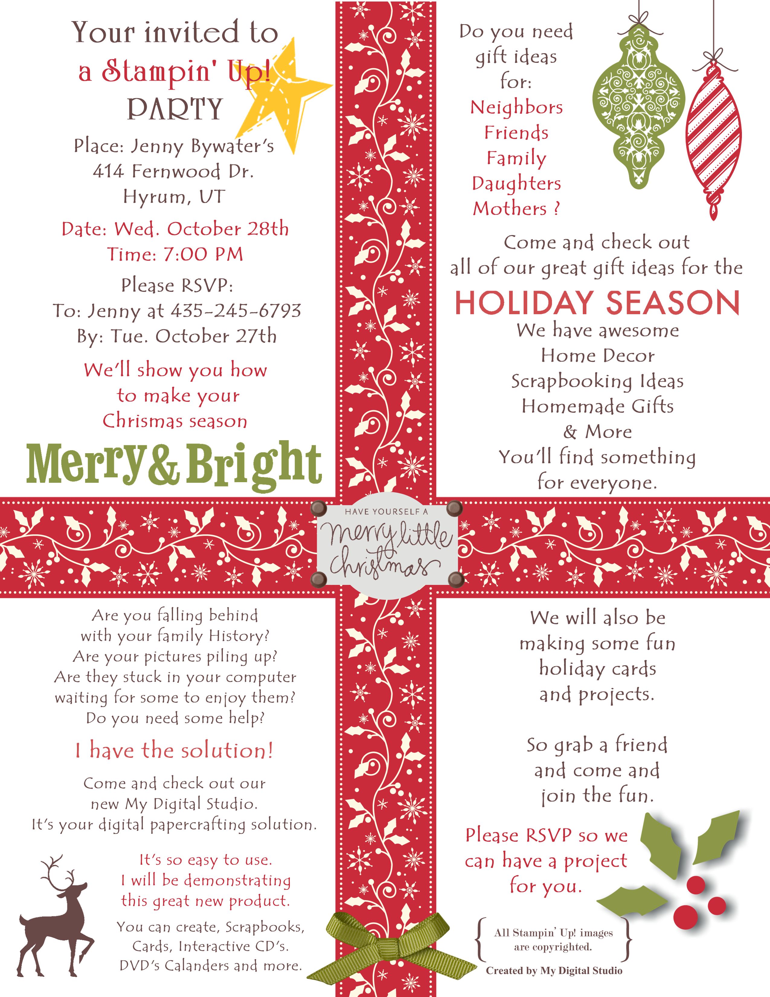 My mom is having a party and everyone is invited. Come and check out the new My Digital Studio. I will also have some fun make and takes and Christmas ideas. Grab a friend and plan to come. Please RSVP so I can plan a project for you. Check out the flyer I created with MDS for more information.