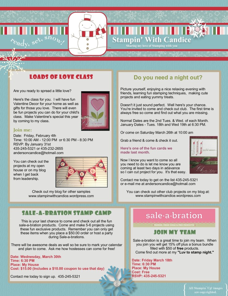 January 2011 Newsletter Rate this:Share this: Click to share on Facebook (Opens in new window) Facebook Click to email a link to a friend (Opens in new window) Email Click to print (Opens in new window) Print Click to share on X (Opens in new window) X Click to share on Pinterest (Opens in new window) Pinterest Like Loading... January 11, 2011 CandiceLeave a comment
