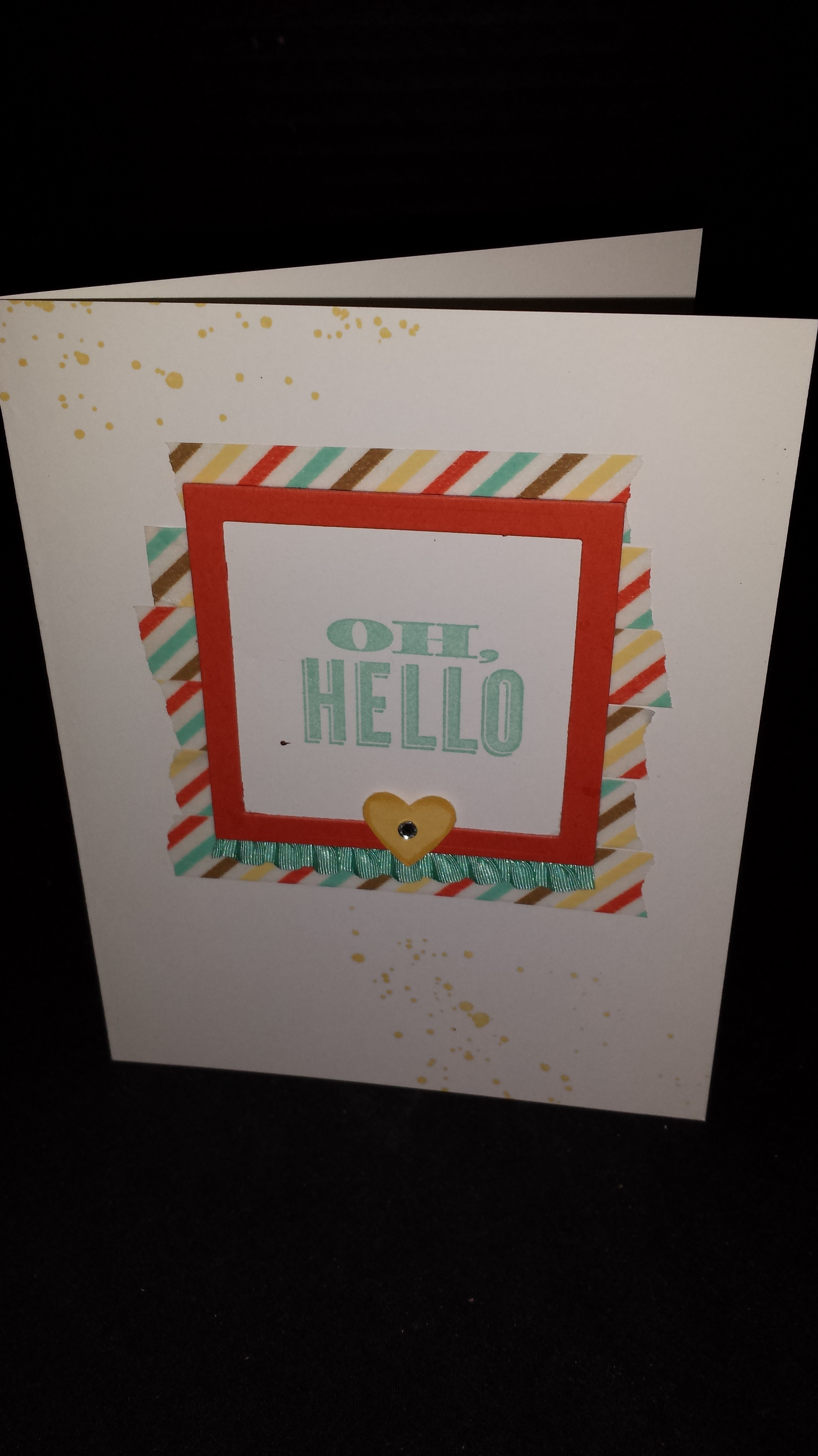 This card features the fun square framelits, a quick easy way to make a frame. I absolutely loved this idea when I first saw it in the annual catalog. This card is simple. It’s finished of with new washi tape from the occasions catalog and just a touch of in-color ribbon.