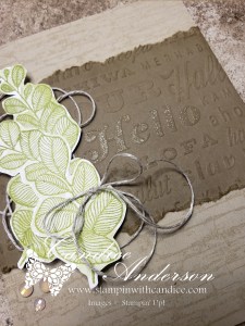 Uniquely Artistic is another stamp set that I received as a gift and wasn’t sure what to do with it. I struggled with the ideas a bit but thought that it would be the perfect set to pair with the Thanks and Hello embossing folders that are also retiring. Rather than stamping a greeting I used the Wink of Stella to highlight the word I wanted to focus on as you can see it the closer up image.
