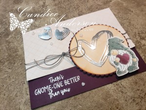 Don’t you just love this stamp set and matching dies. When they first introduced the gnomes in the holiday catalog I loved them and was excited to see a new set in the mini catalog. I just wish they would have ended up in the new catalog, but unfortunately we have to say goodbye to the cute little guys.