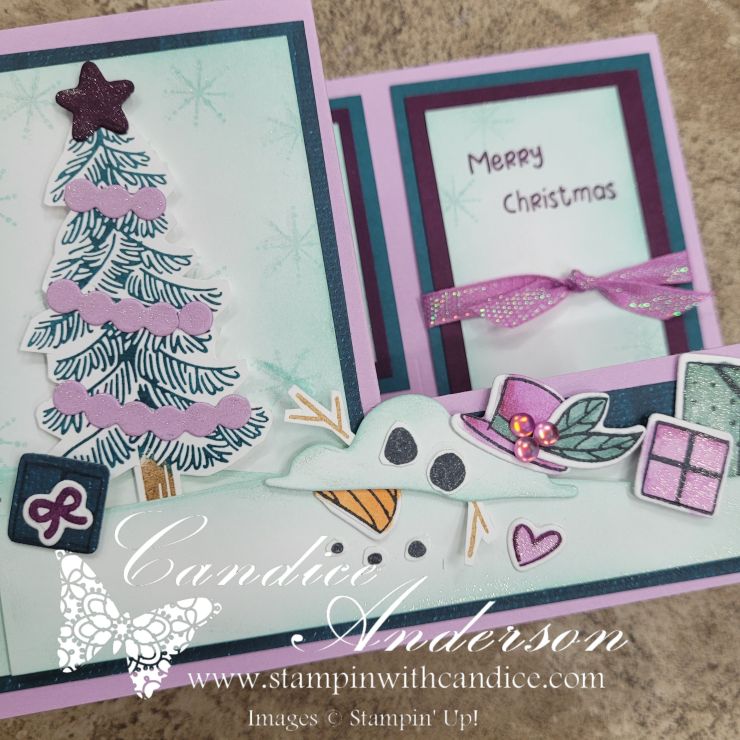 #StampinWithCandice #StamperCandi #CreativeSkills #StampinUp #ACardADayInNovember2025 #30DayChristmasCardMakingChallenge #ChristmasCards #FunFoldCard #SnowmanShenanigans #DarlingDinos #LightAndWonder #ALittleCheer #PineTreeTrimmings #WinkOfStella #PetuniaPop #PrettyPeacock #BlackberryBliss #FreshFreesia #HandmadeCards #HolidayCrafting #StampingInspiration
