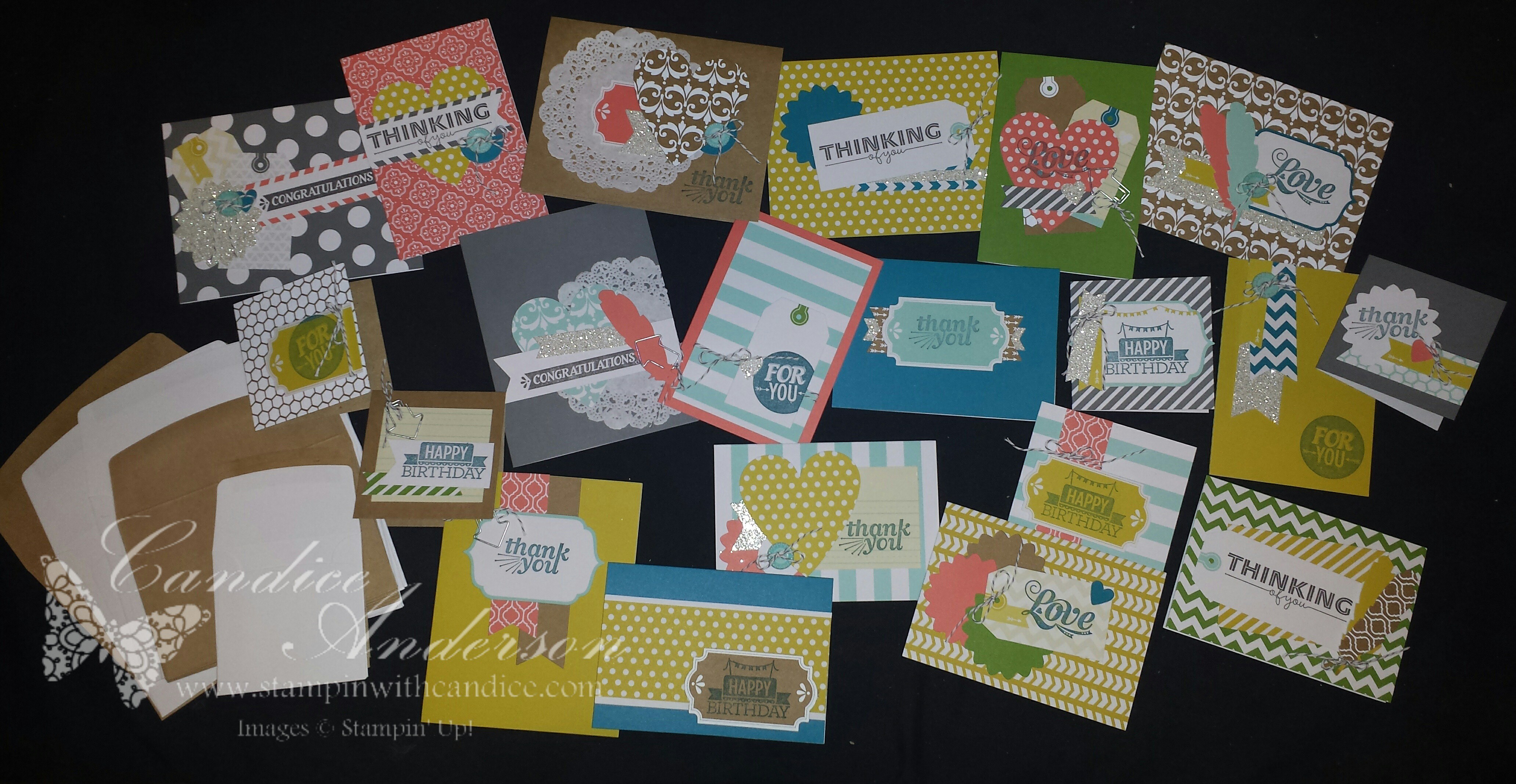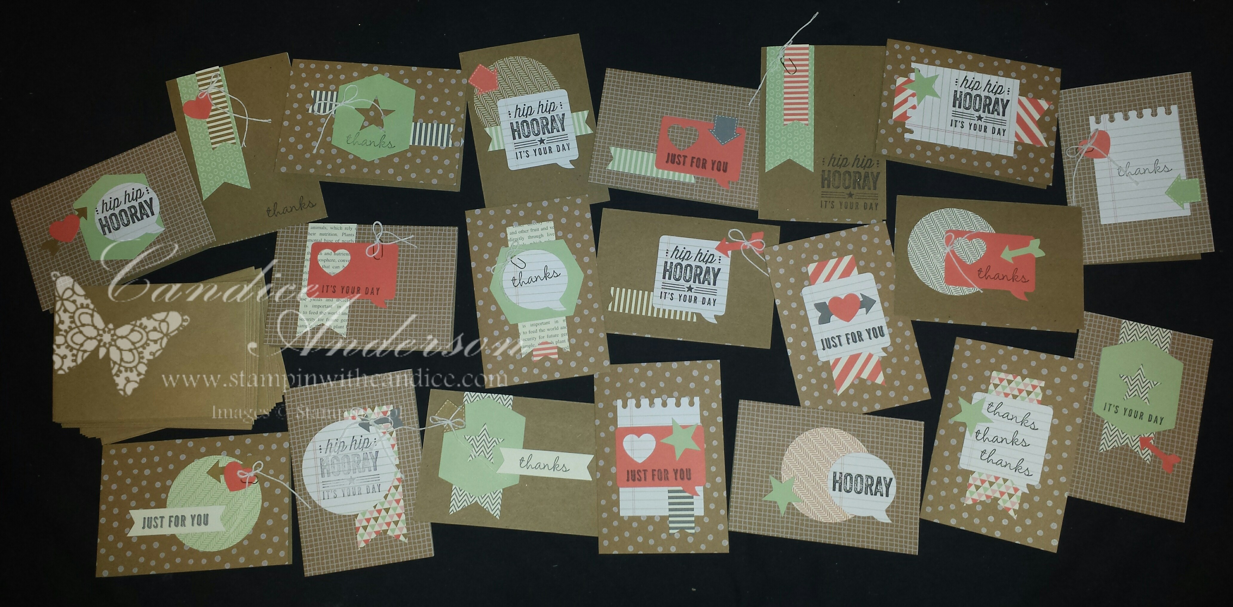 I so love this kit.  You can find it in the main catalog.  I had left over materials so I will be adding a few extra bonuses for this kit.  This is one that includes everything you need so you can easily do this one at home.  This kit includes 20 note size cards with envelopes.