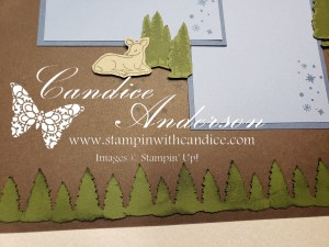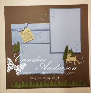 To create the snowy nighttime feel, I used the Snowy Delights Decorative Masks (#165808) with a blending brush. The soft Balmy Blue and Lost Lagoon inks blended beautifully behind the snowman and tied the entire color combo together.