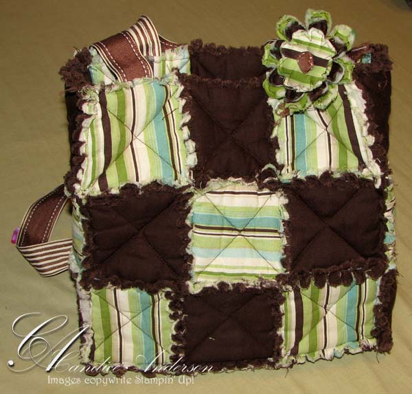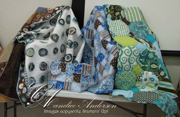 I just had to share. I made this cute quilt for my friend that’s having a baby (I’m going to have hard time giving it away though.) I made it with our scallop square die cut for the big shot. It was so easy I couldn’t believe it. This is coming from someone who hadn’t sewn in 14 years and I often claimed that I couldn’t sew a straight line if my life depended on it. I’m amazed at how easy it was and how much I love it now because of a little bit of instruction.