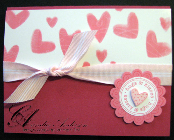 huges-kissesThis is another card I made using the rolling with the punches technique we learned at club.  Featured Set 113756 Love You Much $25.95