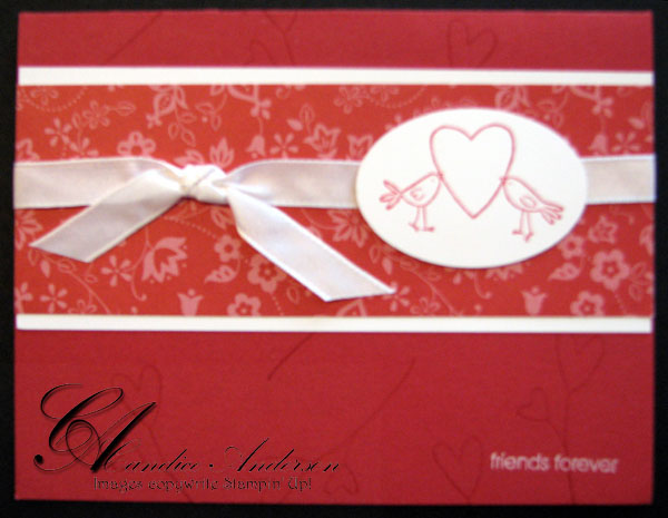 i-heart-youThis was a card I made to show case the fun stuff from the mini catalog.  Now this set is in the main catalog.  It’s hard to see but the heart was actually stamped with real read craft ink and then embossed with iridescent ice.  Featured Set 111758 A Happy Heart $22.95