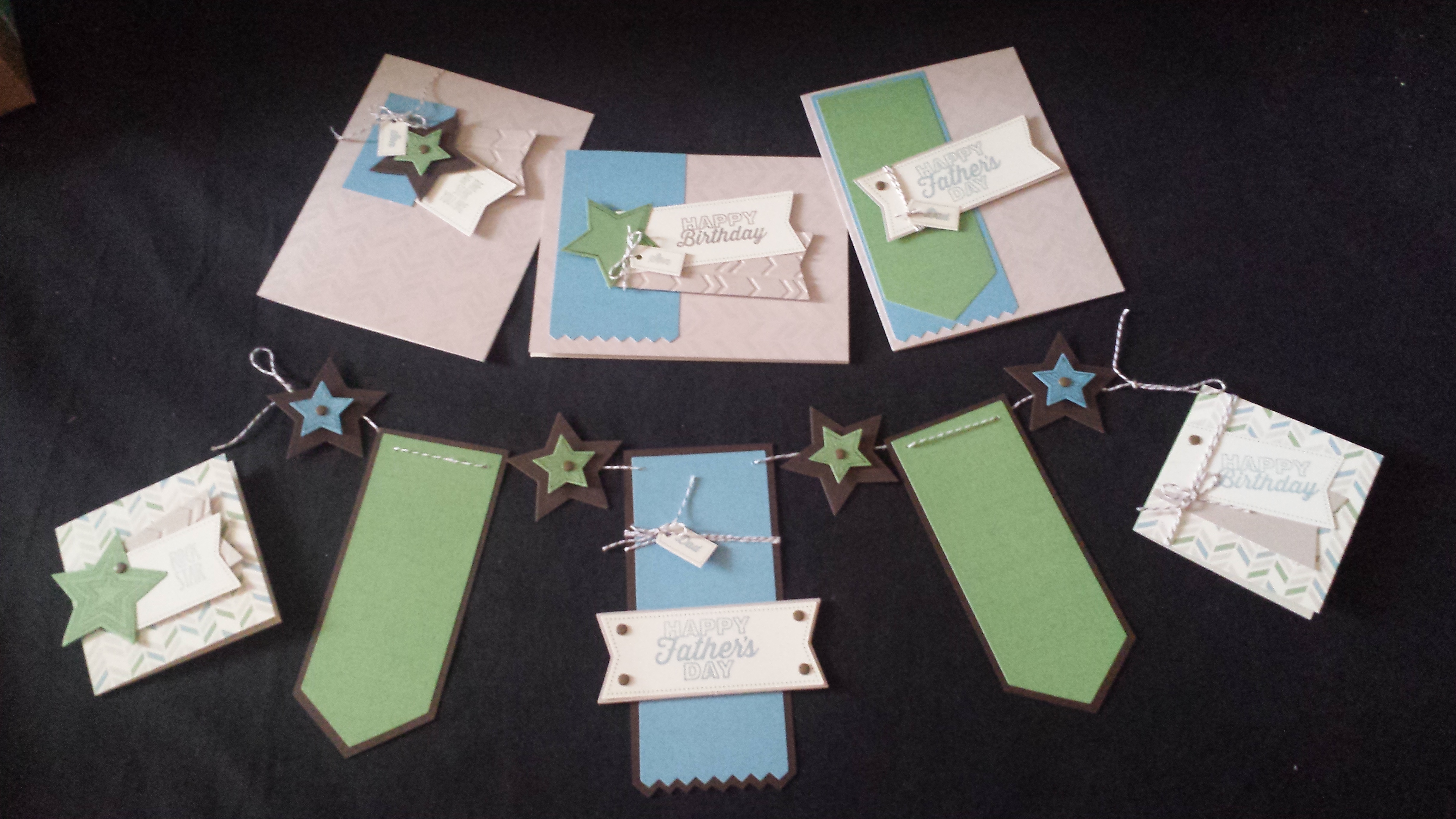 I actually made two of the Father’s Day cards, but I gave one to my Dad and one to my husband so I only had one left for the picture.  I didn’t use the blue and green tags on all my cards instead I incorporated the new “Be the Star” stamp set and added some of my own paper.  I ended up using the extra tags to make this cute banner to celebrate Dad.