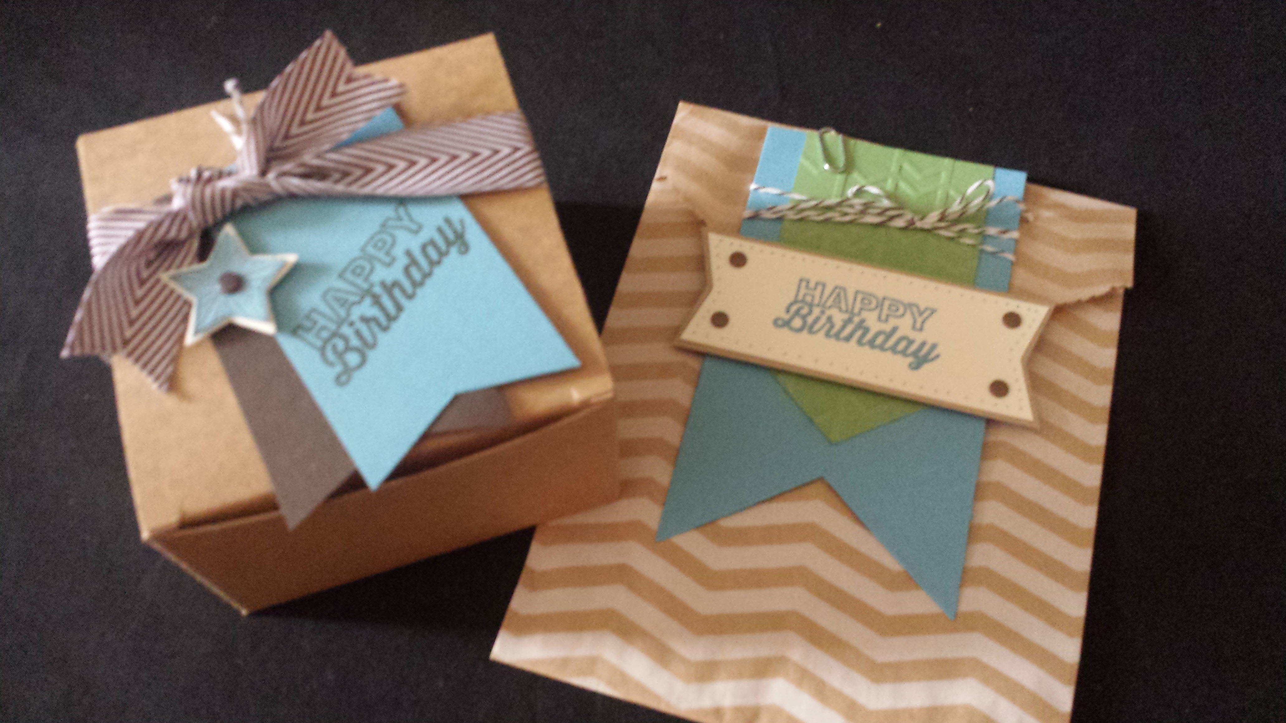 I also came up with these two fun  Birthday gift containers using the same color scheme and of course the fun stamp sets from the Paper Pumpkin kit.  I even used the “Be the Star” set and matching framelits.